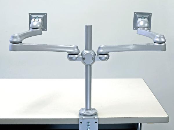 ◆1本の支柱に対し、水平に2画面のモニターを設置することが出来るモニターアームです。