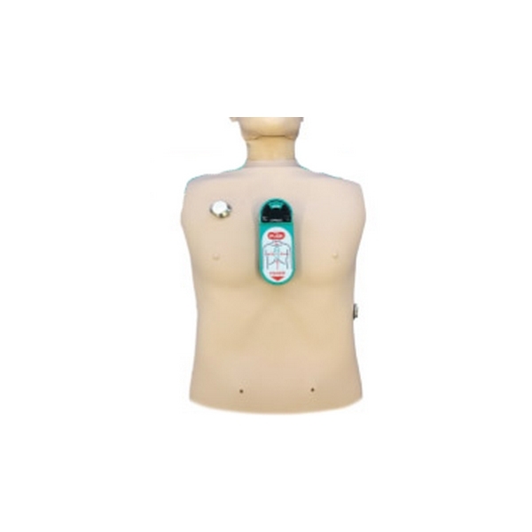 付属品:専用ポーチ、USBケーブル 操作方法:電源スイッチを押し、モード切替スイッチでCPRサポートモード・マニュアルモードを選択。本品に指示された位置を参考に患者の胸部に本品を置き、その上に手のひらを置く。テンポ音およびランプの点滅にあわせ、胸骨圧迫を行う。(マニュアルモードの場合、テンポ音は発生しません。) 音声ガイド、インジケータを参考にしながら胸骨圧迫を続ける。 終了後は電源スイッチを切り、次の使用に備えて電池交換、清掃をする。 |