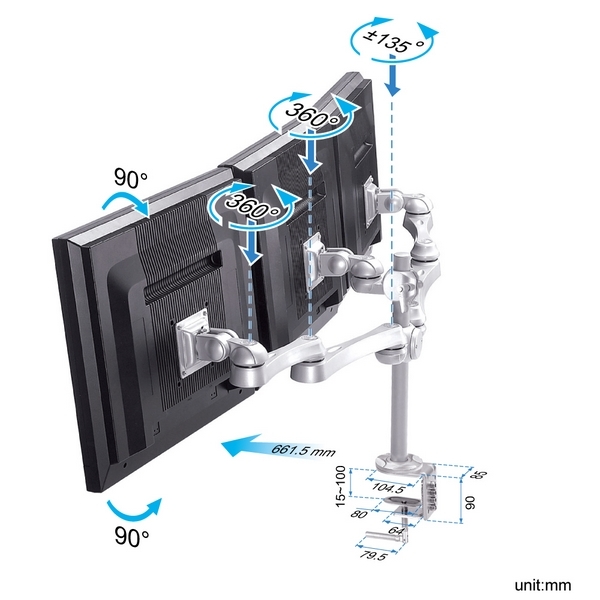 | 品名 | 水平多関節アーム クランプ固定 3画面アーム LA-516-1 |