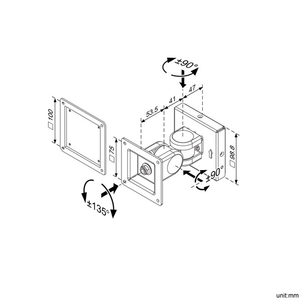 ◆VESA規格に準拠し、75×75mmおよび100×100mmピッチの取付穴を有する液晶モニタが