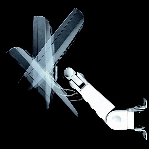 ◆5軸の関節を有しており、画面の位置や角度を自由に調節できます。アーム付け根部の角度調節は、