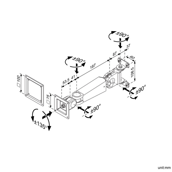 ◆VESA規格に準拠し、75x75mmまたは100x100mmピッチの取り付け穴を持つ液晶モニタ、テレビが