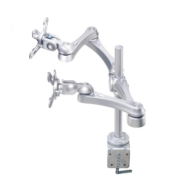 ◆1本の支柱に対し、2画面のモニターを水平方向に設置が出来るモニターアームセットです。