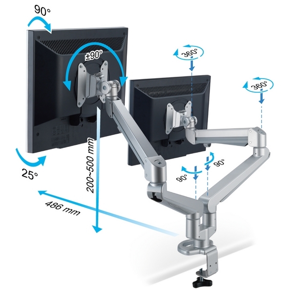 ◆2つのモニターは独立したアーム関節に取り付け、自由に配置することができます。