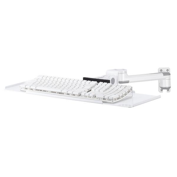◆HM-5517 壁面固定タイプキーボードアームです。キーボード設置部は左右5度の傾き調整と90度上方向に折りたためる収納機能を持っています。水平関節により左右方向に180度可動します。耐荷重は~6㎏未満となります