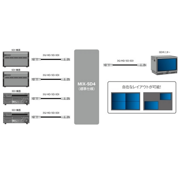 ※廉価版:SDI4入力→2入力 M I X - S D 4 / S D 2マルチスキャンコンバータ(SDIx2)もありま