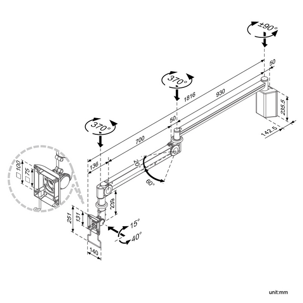 ◆壁面から大きくモニタを伸ばすことのできるロングアームです。