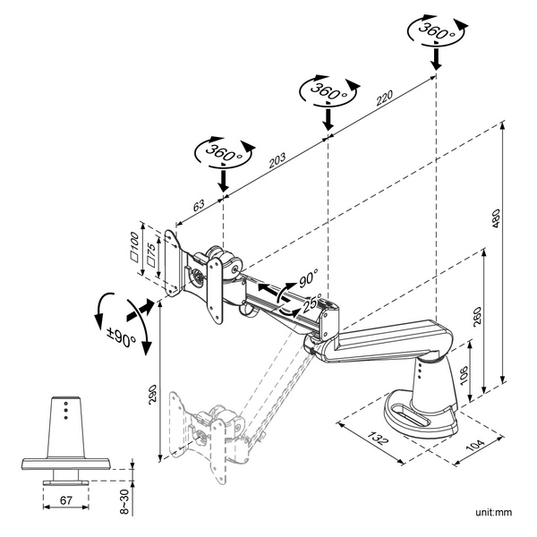 ◆垂直関節はガススプリングを内蔵しており、本体重量3kg~8kg以内の